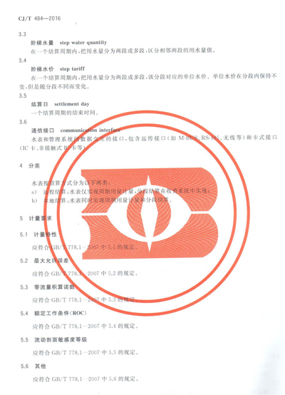 This standard clarifies the definition, terminology, pricing requirements, test methods, etc. of the ladder water price water meter, and determines the settlement period, settlement date freeze, data storage period and other requirements of the ladder pricing. It is a navigator for water supply management departments to choose ladder pricing water meters for trade settlement!